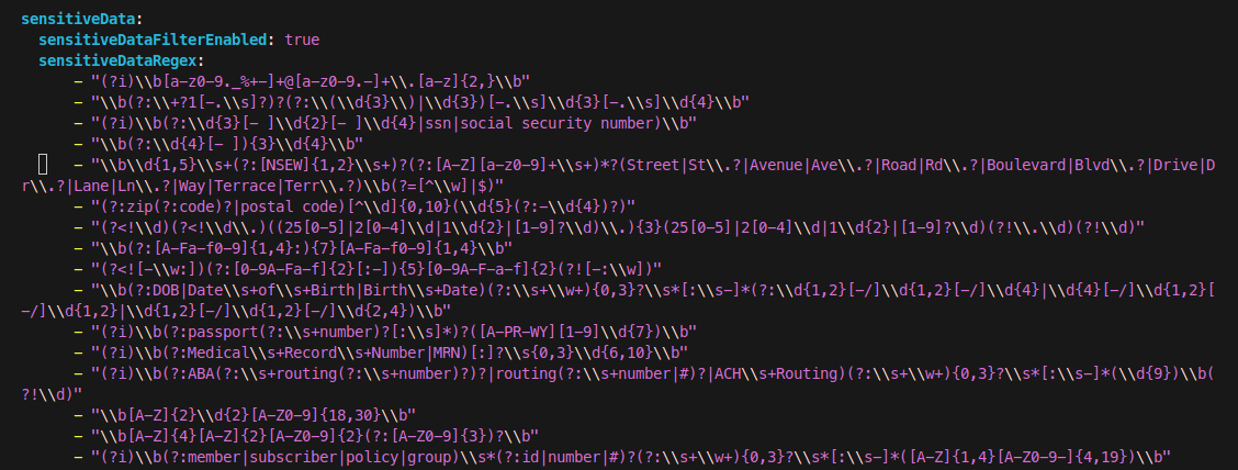 Configuration: Sensitive data filtering is enabled by setting sensitiveDataFilterEnabled: true in your TraceServer configuration file. You can customize the types of sensitive data detected using regular expressions under sensitiveDataRegex. (If using the Saas production, this will be handled by the InsightFinder Team)