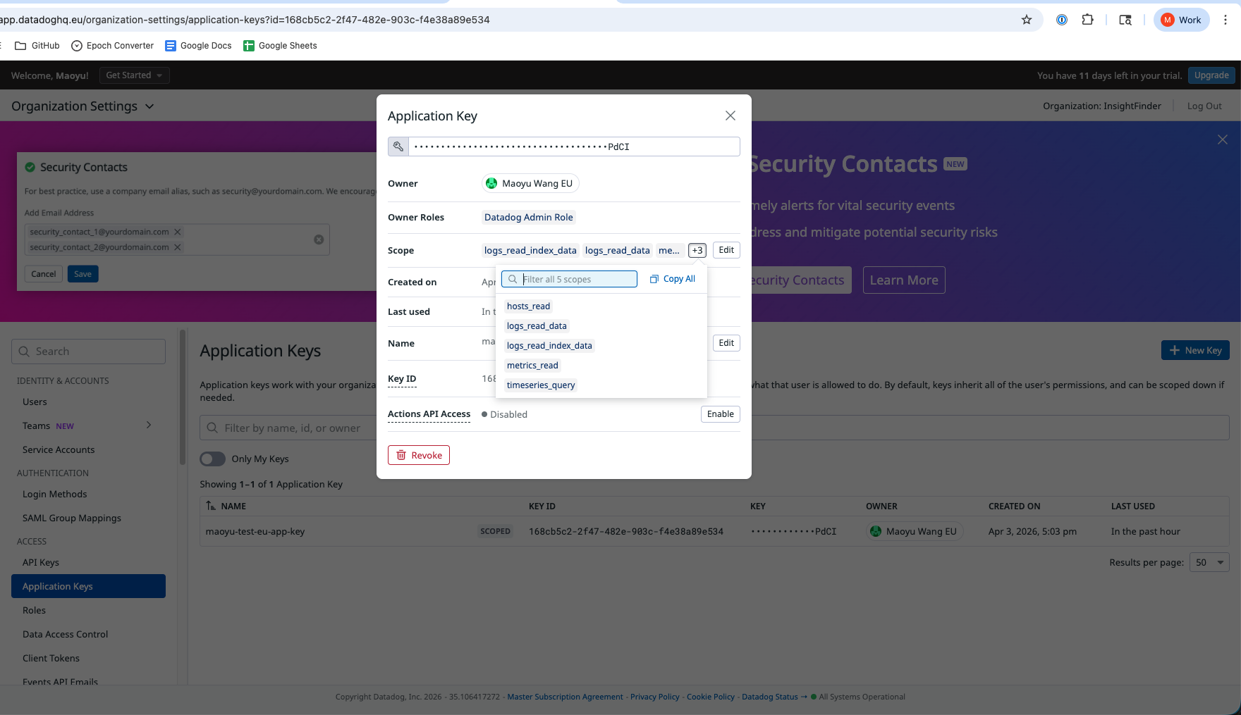2. Datadog Application Key and Key ID – You can to go below link in your account – https://app.datadoghq.com/organization-settings/application-keys